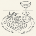 • 1 glass Champagne Any good yeasty method traditional sparking wine will do. I prefer it a little on the flat side – so left over from the night before is perfect.
